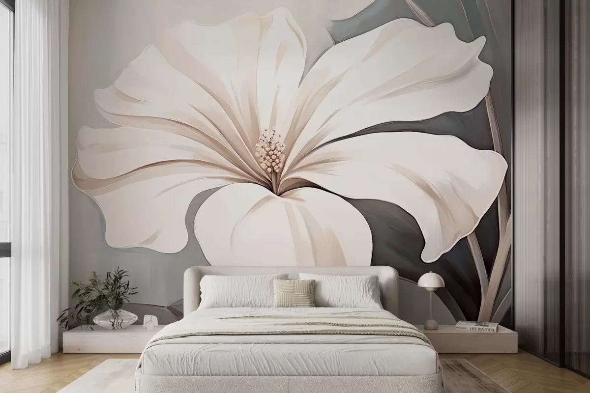 Fotomurales Gran flor blanca con pétalos sobre fondo azul grisáceo Nr. w09033