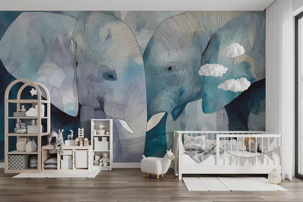 Fotomurales Bonitos elefantes azules en estilo acuarela Nr. w09098