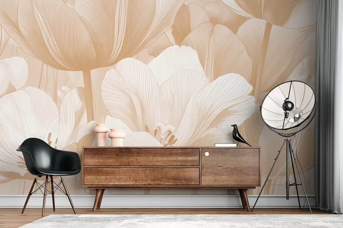 Fotomurales Amapolas beige en tonos claros Nr. w09099