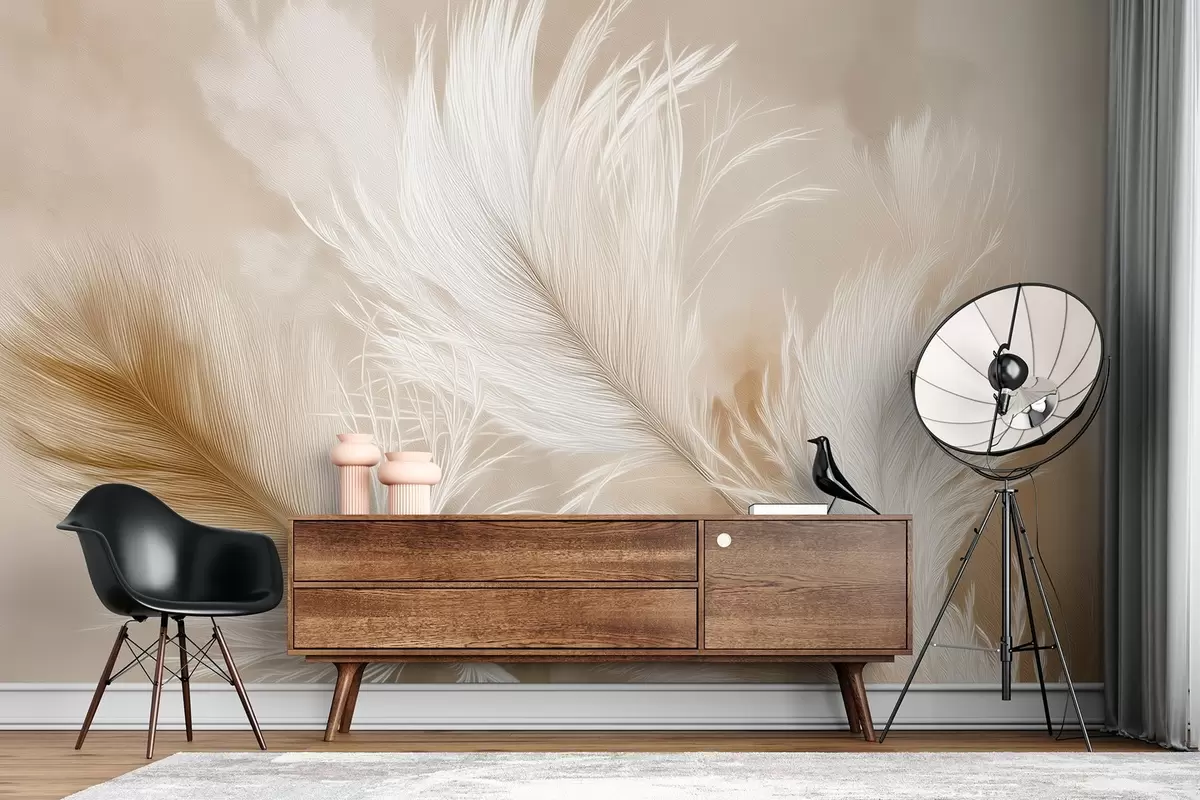 murales de pared Plumas voladoras sobre fondo beige w09102