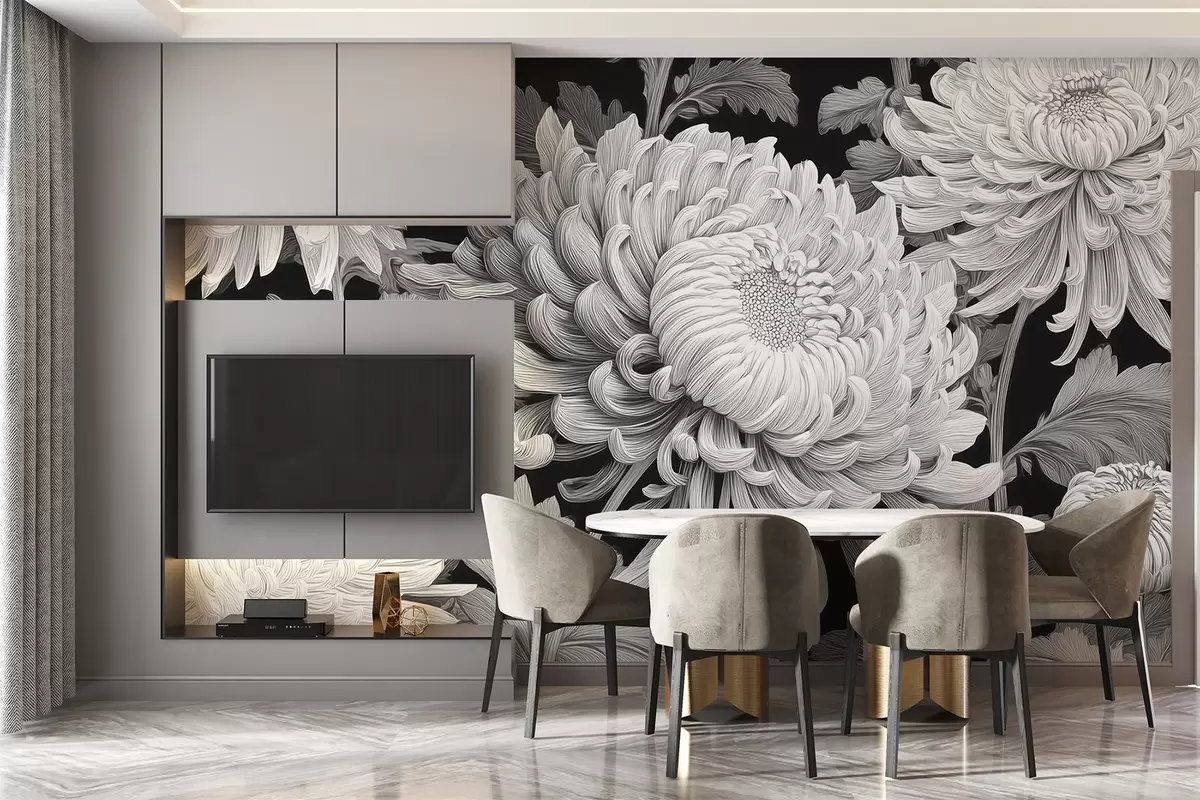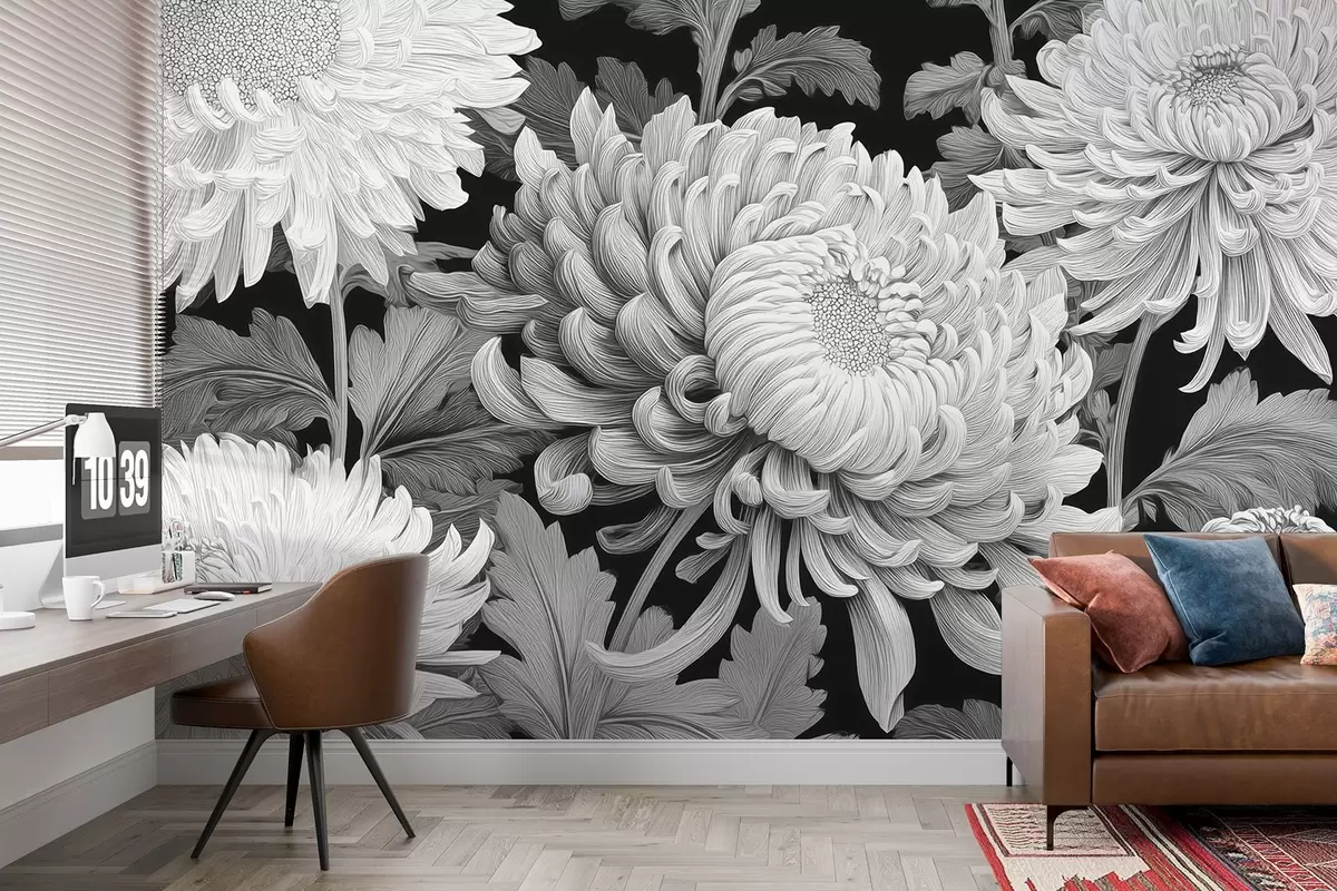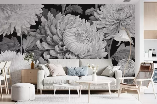 Fotomurales Orquídeas grandes blancas y negras con hojas Nr. w09125v1