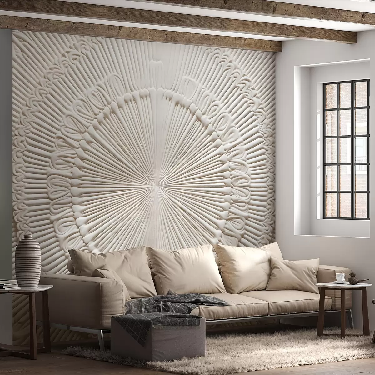 Fotomurales Estampado circular abstracto texturizado con líneas radiales y elementos decorativos, diseño simétrico, textura en relieve Nr. w09154