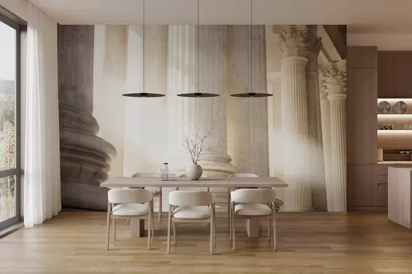 Fotomurales Columnas, arquitectura clásica, diseño elegante, composición simétrica texturizada, paleta de colores neutros Nr. w09209
