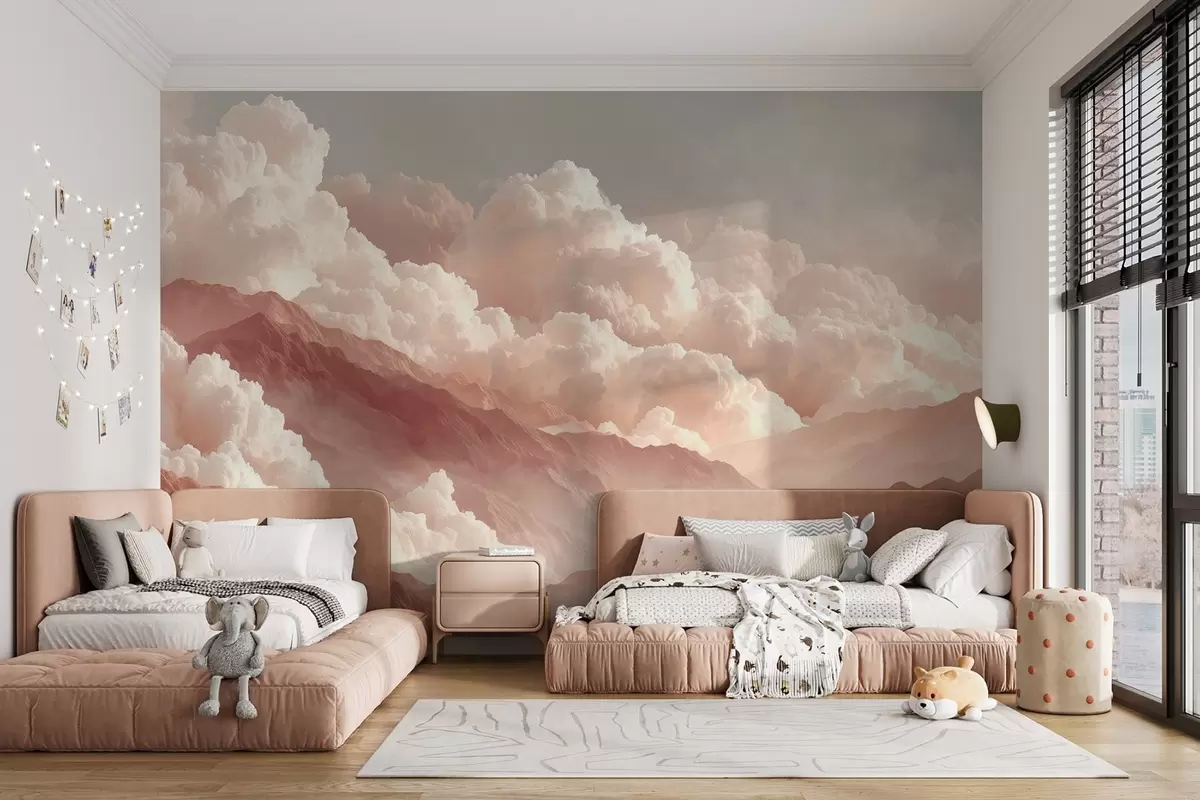 Fotomurales Cálido amanecer sobre montañas con nubes esponjosas Nr. w09226