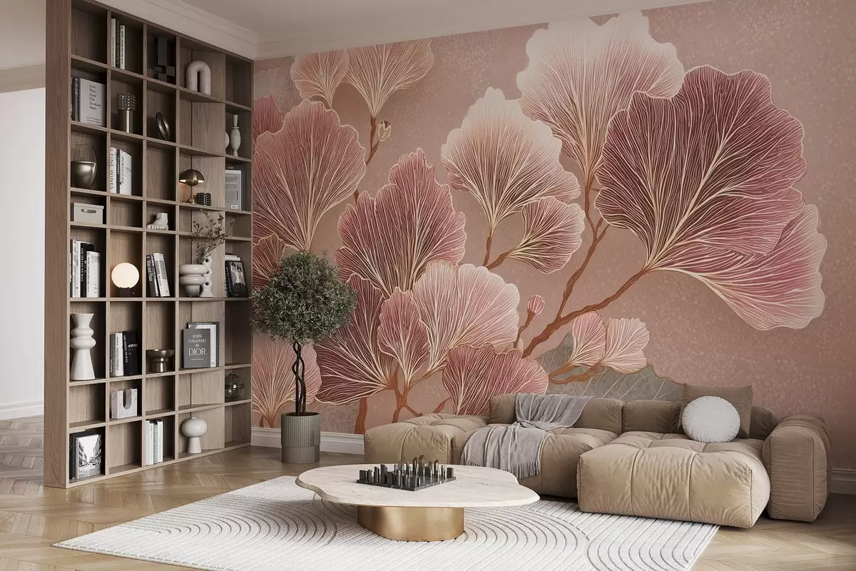 Fotomurales Rama de hojas en tonos rosas y morados Nr. w09249