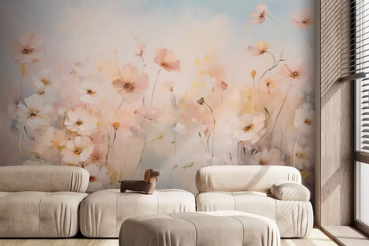 Fotomurales Flores silvestres en tonos pastel en estilo acuarela Nr. w09280