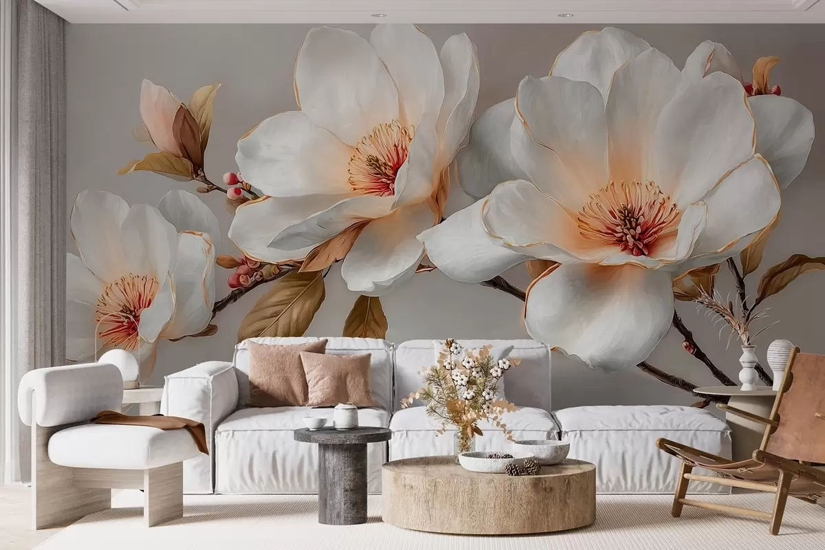 Fotomurales Delicadas flores sobre una rama en tonos pastel con el centro naranja Nr. w09299