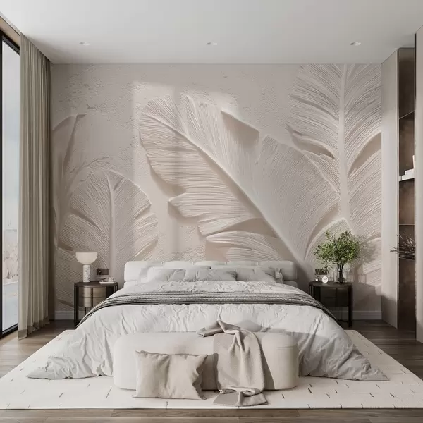 Fotomurales Hojas en relieve en cálidos tonos beige-arena Nr. w09307v1
