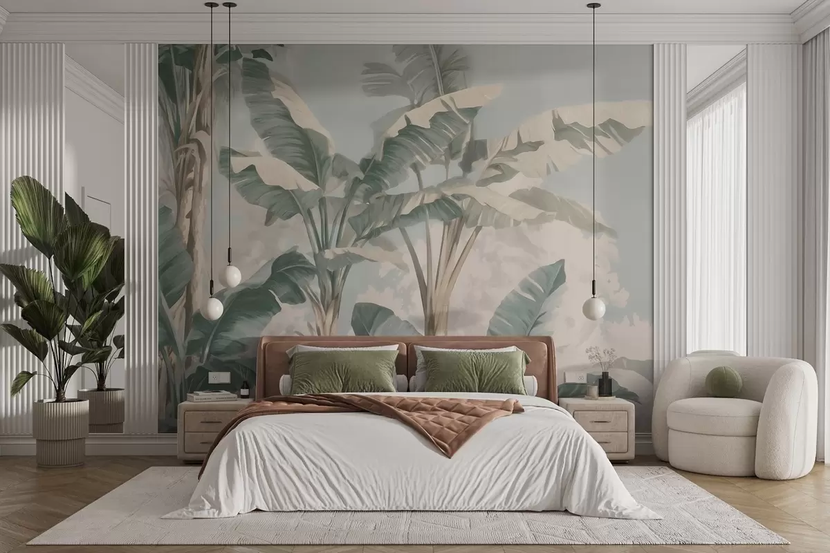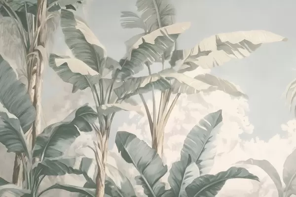 Fotomurales Hojas de plátano tropicales en suaves tonos pastel Nr. w09311