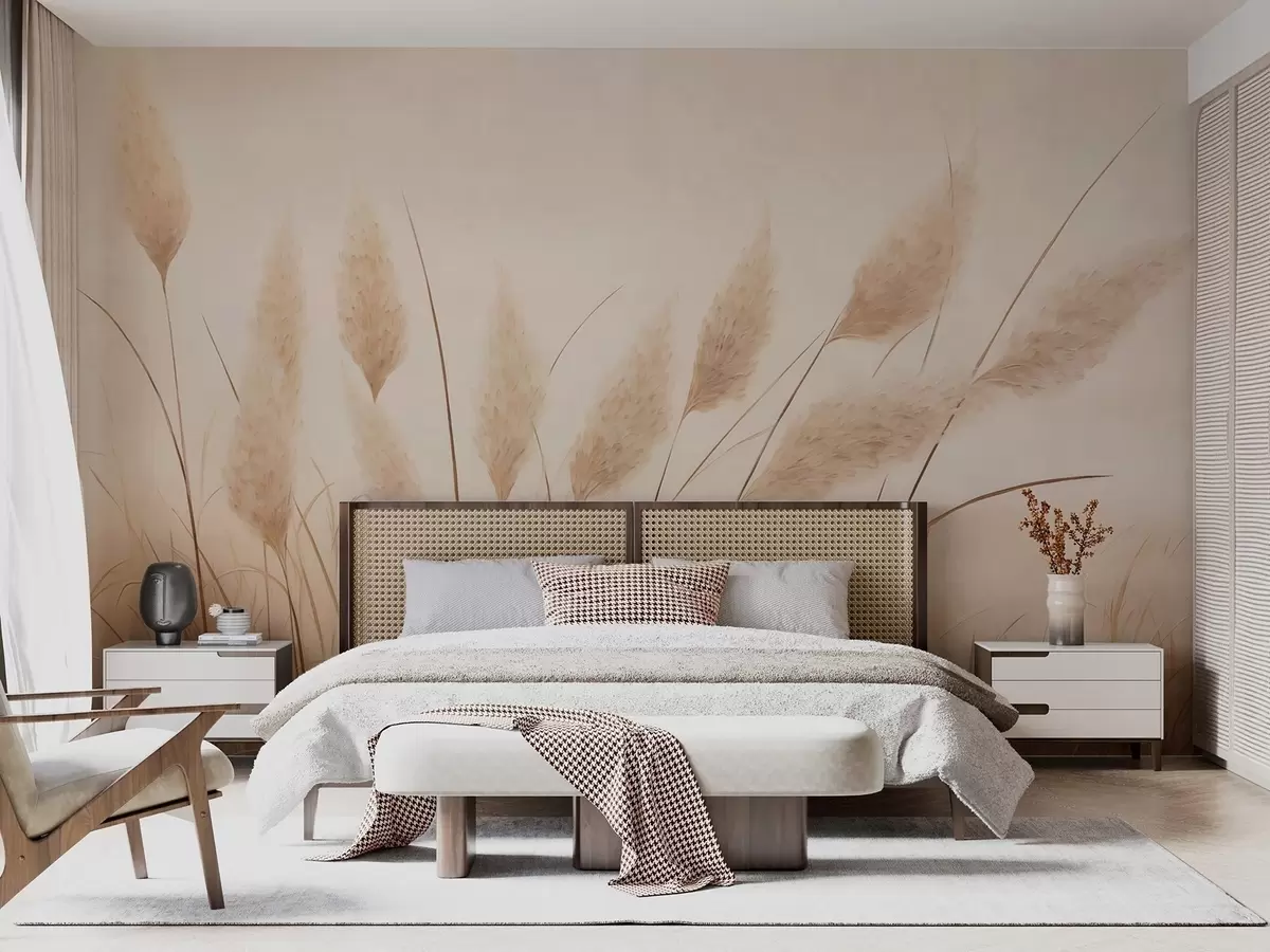 Fotomurales Hierba pampa de color beige suave en el campo Nr. w09324