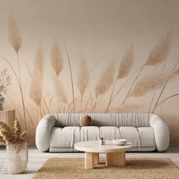 Fotomurales Hierba pampa de color beige suave en el campo Nr. w09324