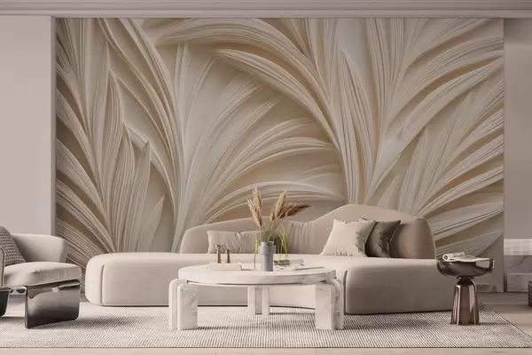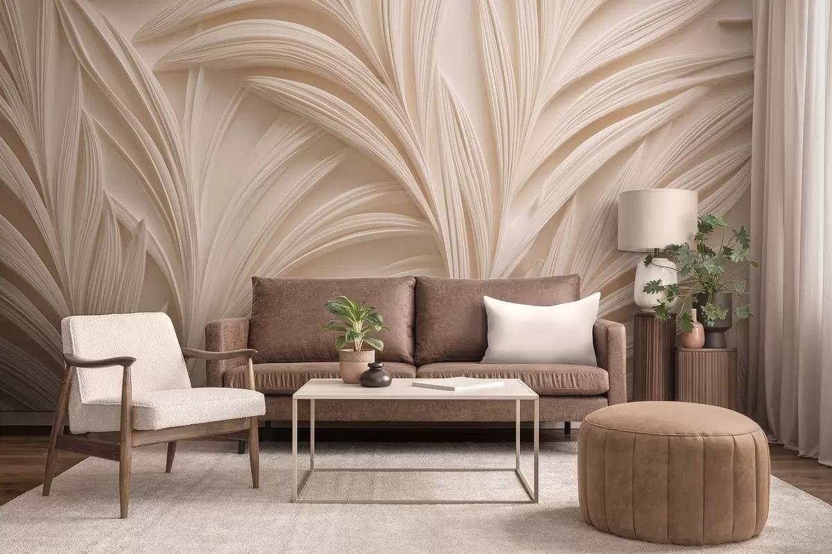 Fotomurales Hojas decorativas de color beige en estilo 3D Nr. w09351