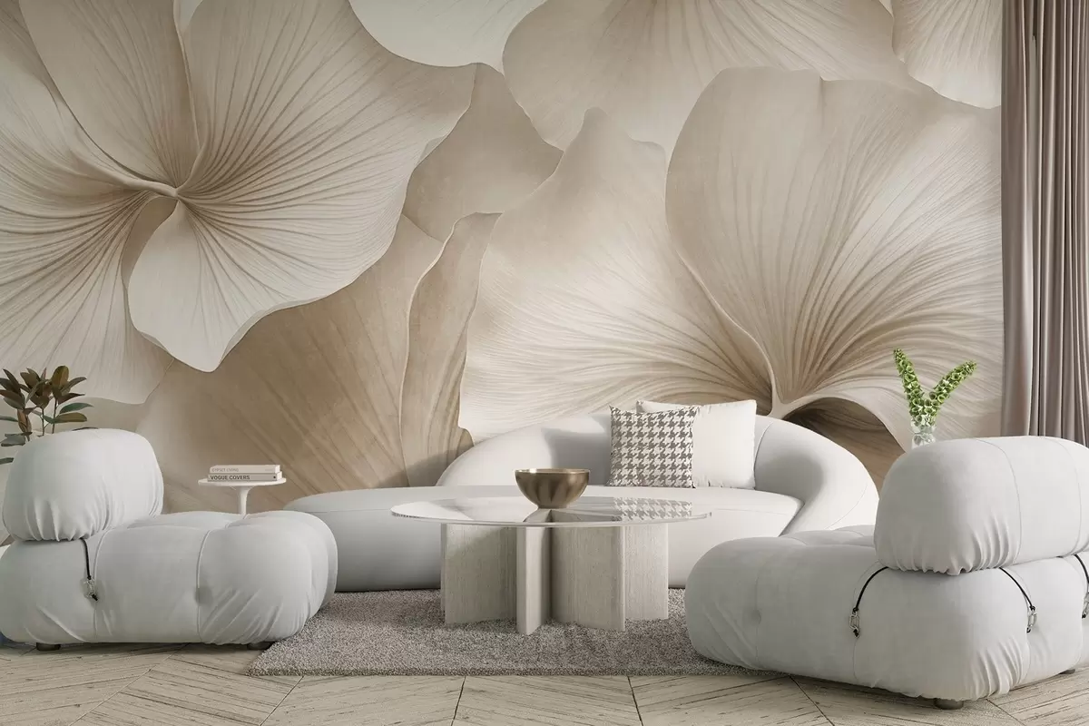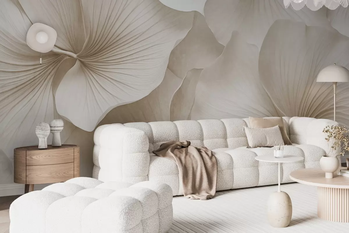 Fotomurales Hojas de ginkgo blancas y beige, textura suave, fondo floral abstracto, estilo minimalista moderno Nr. w09421v1