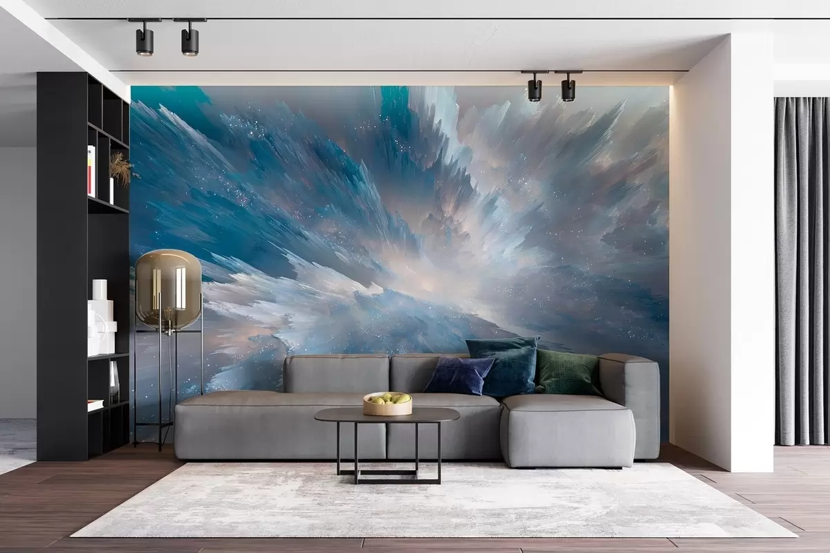 Fotomurales Resumen del resplandor cósmico del cielo en tonos azules helados. Nr. w09461