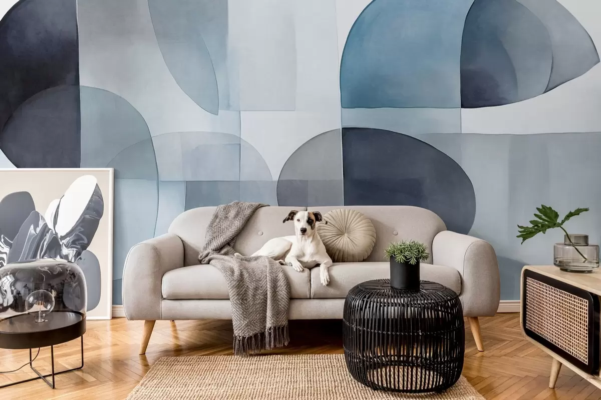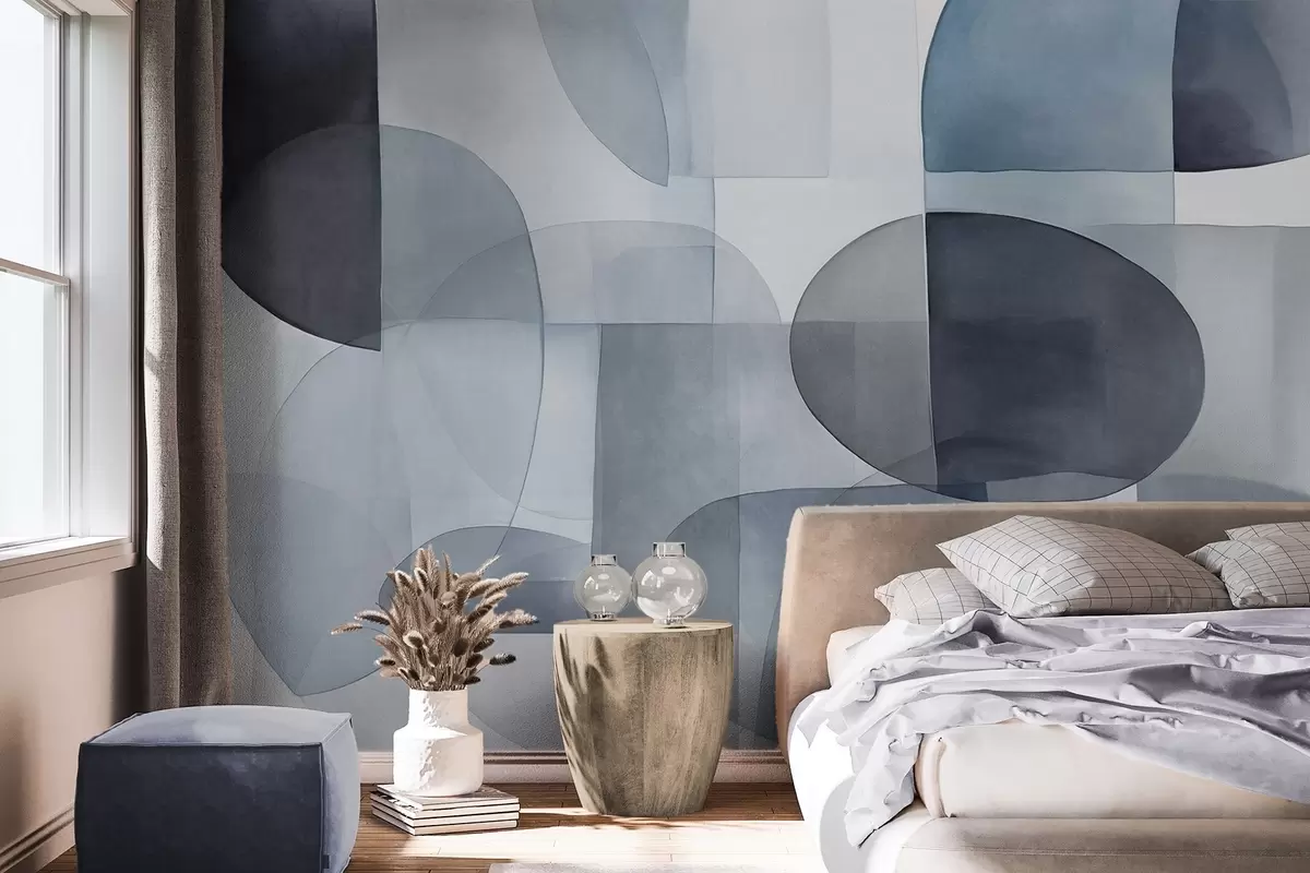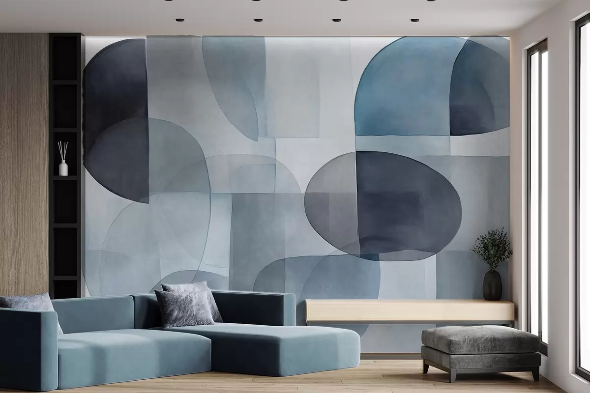 Fotomurales Formas abstractas con textura en tonos grises y azules, tonos apagados, composición minimalista, fondo neutro Nr. w09467v1