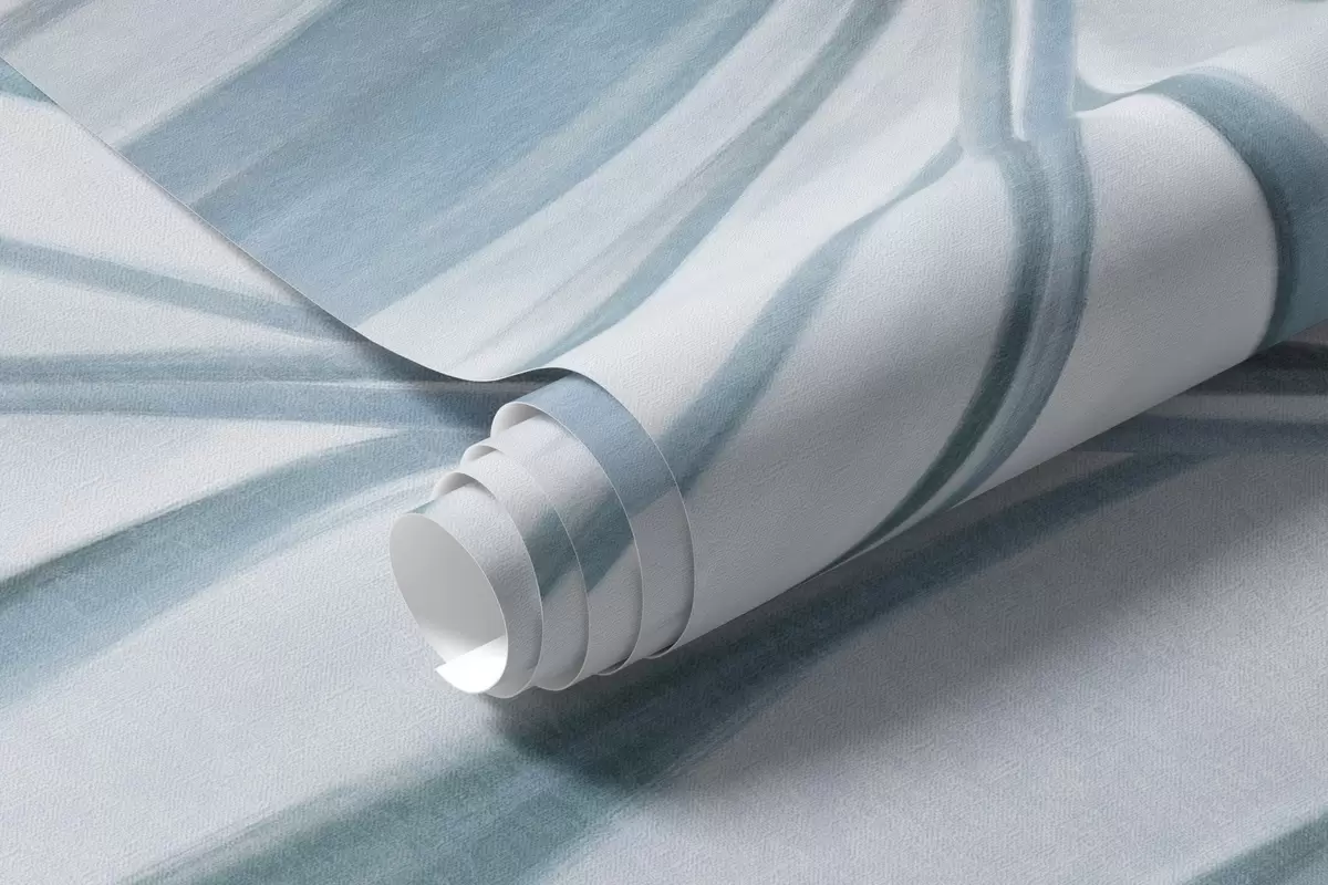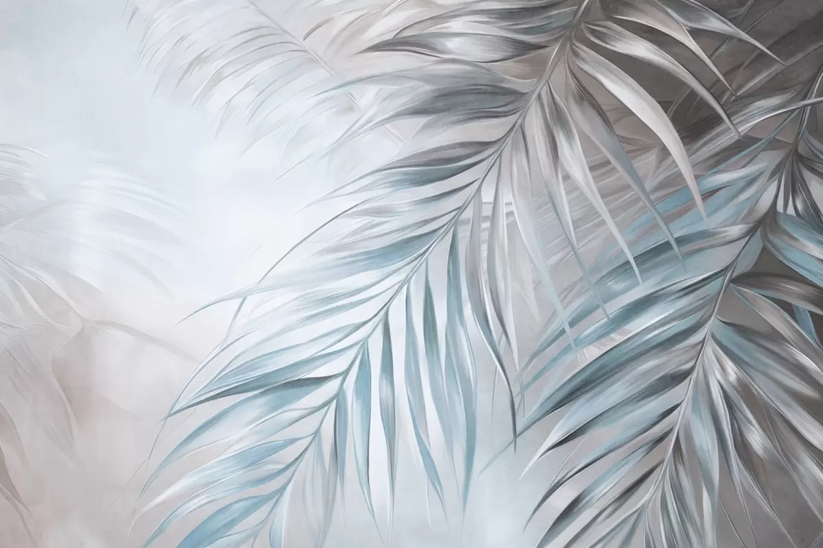 Fotomurales Hojas de palmera con tonos grises y azules, fondo con textura ligera y colores suaves, elegante estilo tropical Nr. w09475v1