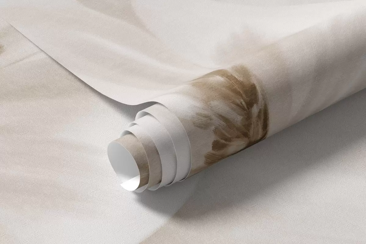 Fotomurales Un campo de flores beige con delicados pétalos y suaves hojas marrones, en un estilo acuarela de ensueño y texturizado Nr. w09481v1