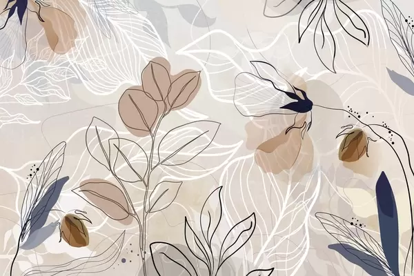 Fotomurales Fondo abstracto beige con dibujo lineal de hojas y flores, moderno, minimalista, formas orgánicas, estampado botánico Nr. w09487