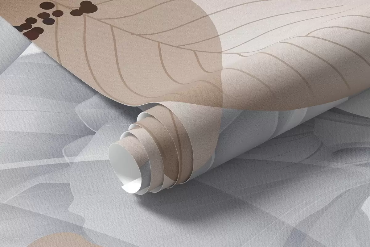 Fotomurales Flores marrones y hojas grises, fondo botánico floral, diseño elegante, colores suaves, detalles delicados y ligeros Nr. w09497v1