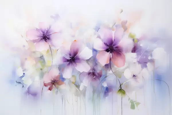 Fotomurales Flores primaverales en acuarela en tonos rosa y morado. Nr. w09502