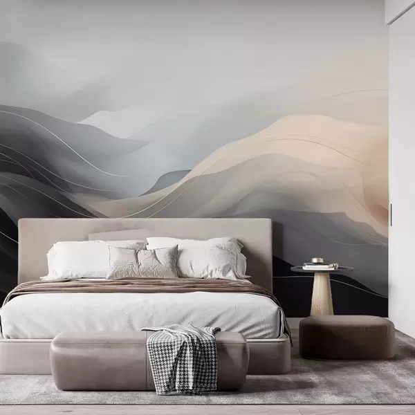 Fotomurales Olas abstractas y brumosas en tonos grisáceos y crema con líneas amarillas. Nr. w09504