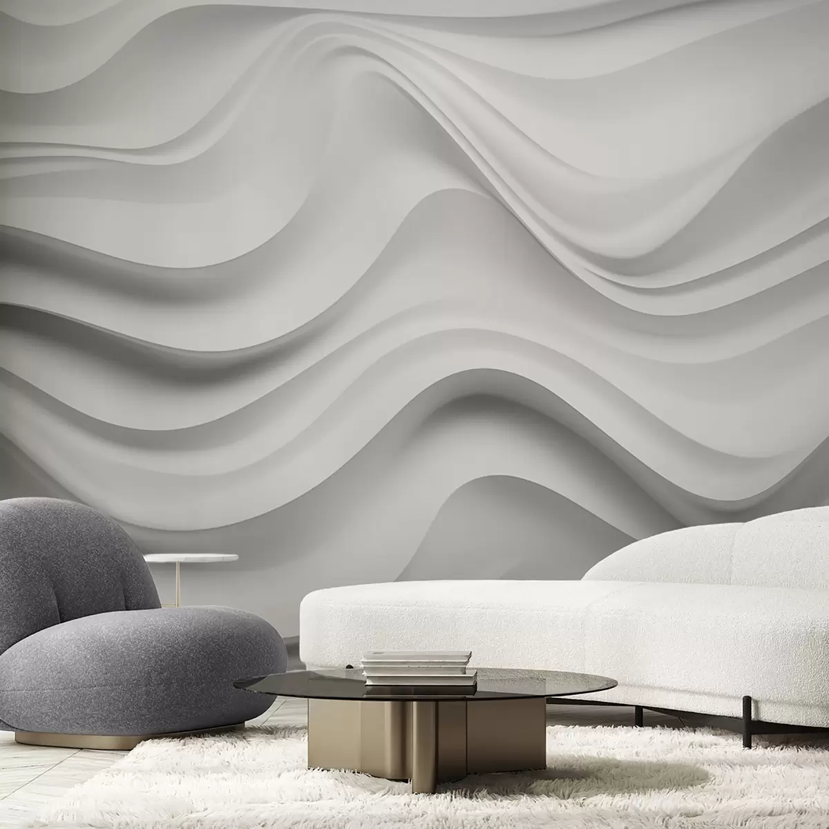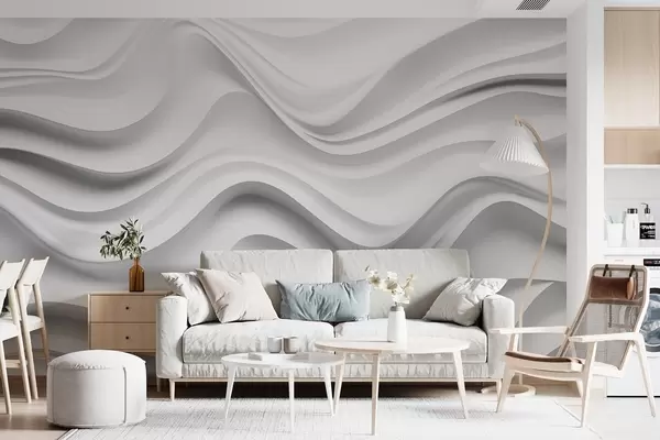 Fotomurales Composición abstracta en blanco y negro en 3D con ondas suaves. Nr. w09506