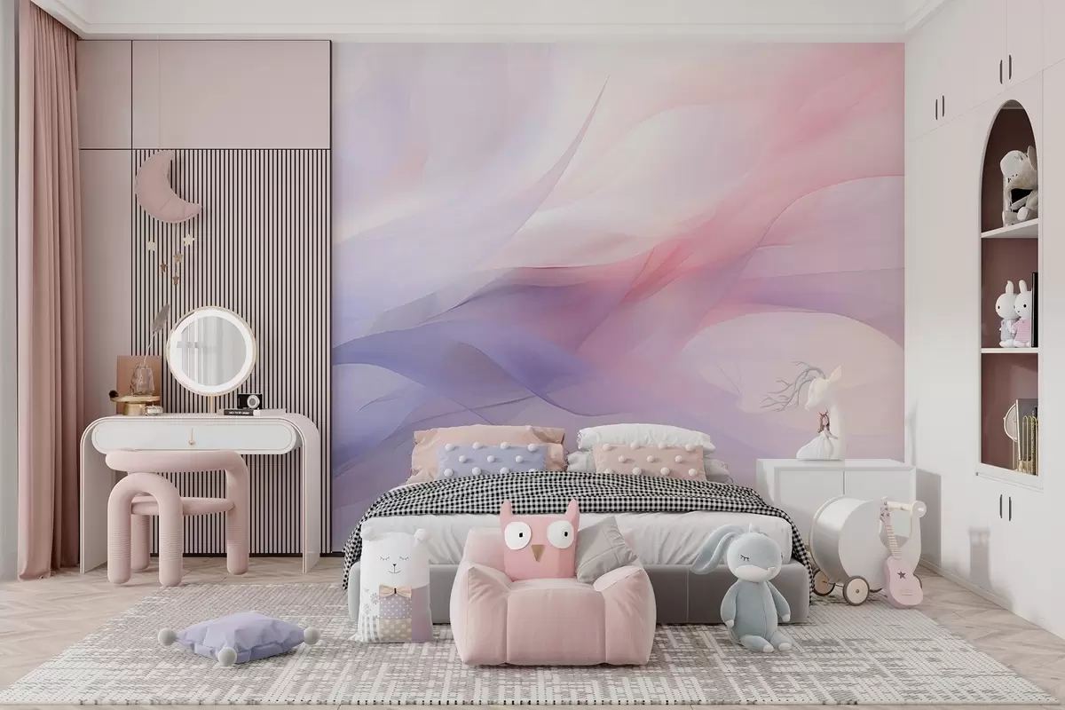 Fotomurales Suaves ondas abstractas en tonos azules y rosas. Nr. w09508