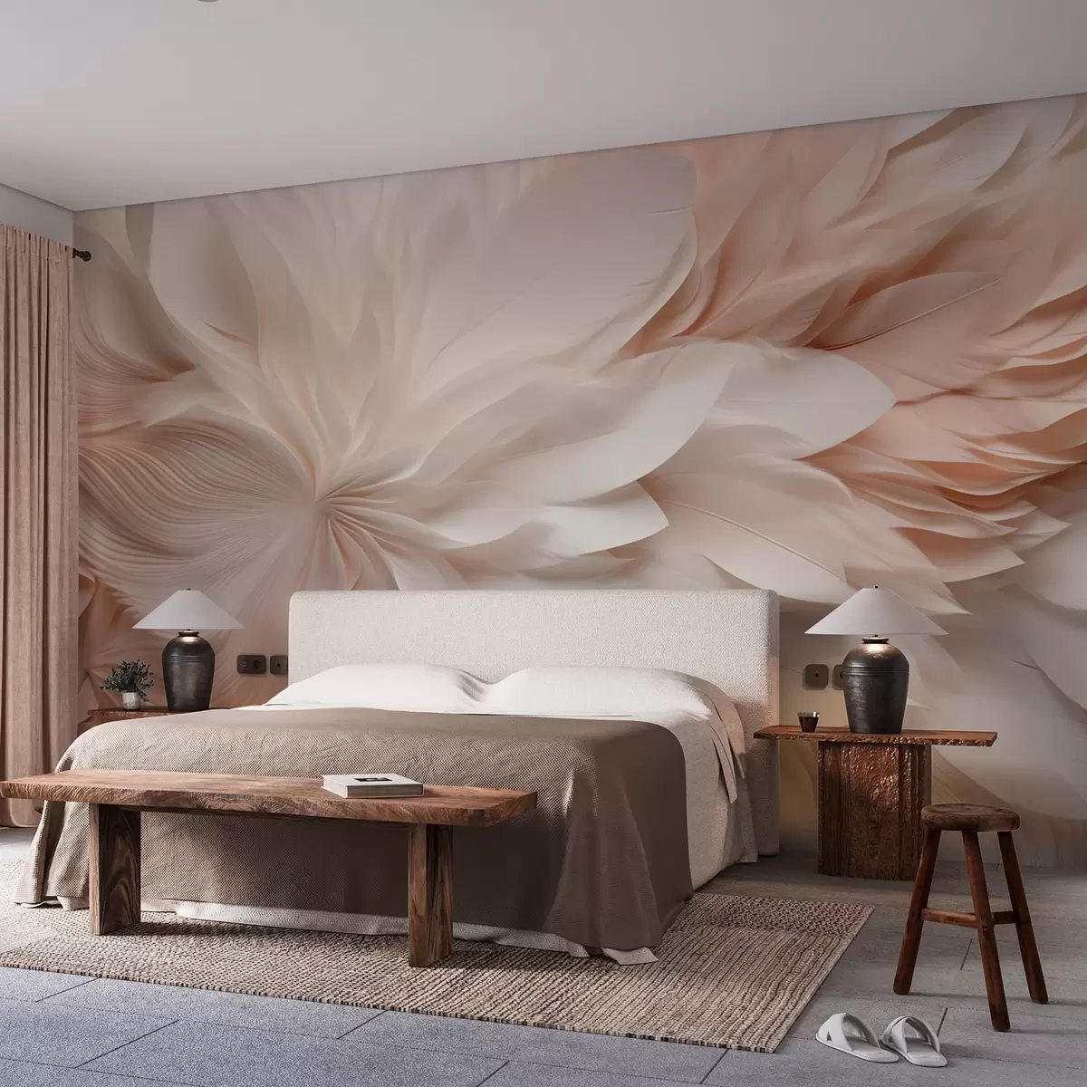 Fotomurales Delicadas plumas abstractas en movimiento en tonos beige y crema. Nr. w09509