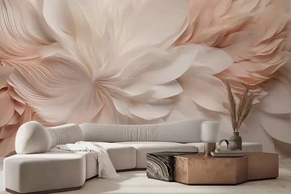 Fotomurales Delicadas plumas abstractas en movimiento en tonos beige y crema. Nr. w09509