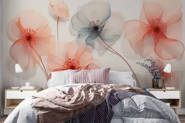 Fotomurales Flores translúcidas en tonos rojos y azules. Nr. w09515