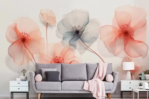 Fotomurales Flores translúcidas en tonos rojos y azules. Nr. w09515