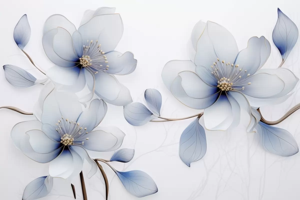 Fotomurales Elegante composición floral de magnolia en tonos azules. Nr. w09520