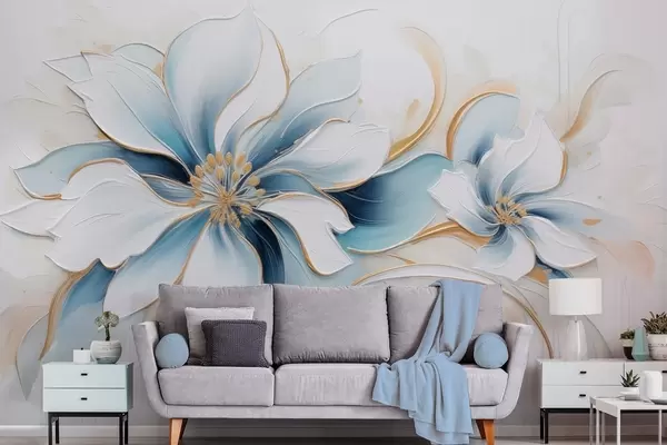 murales de pared Abstracción pictórica con flores azules en estilo de pintura al óleo. w09524