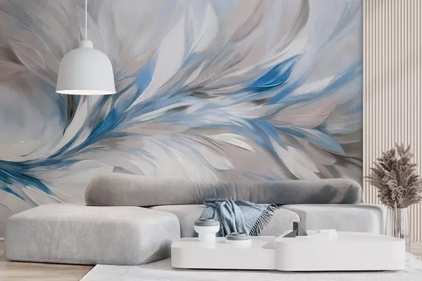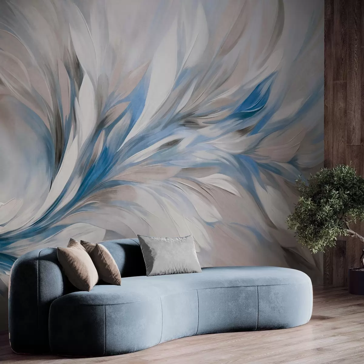 Fotomurales Estilo de pintura abstracta con pinceladas texturizadas en blanco, azul y gris sobre un fondo suave y claro. Nr. w09552v1