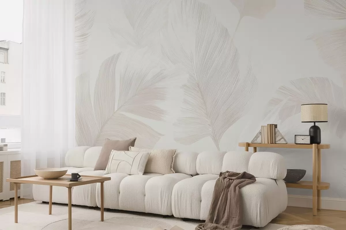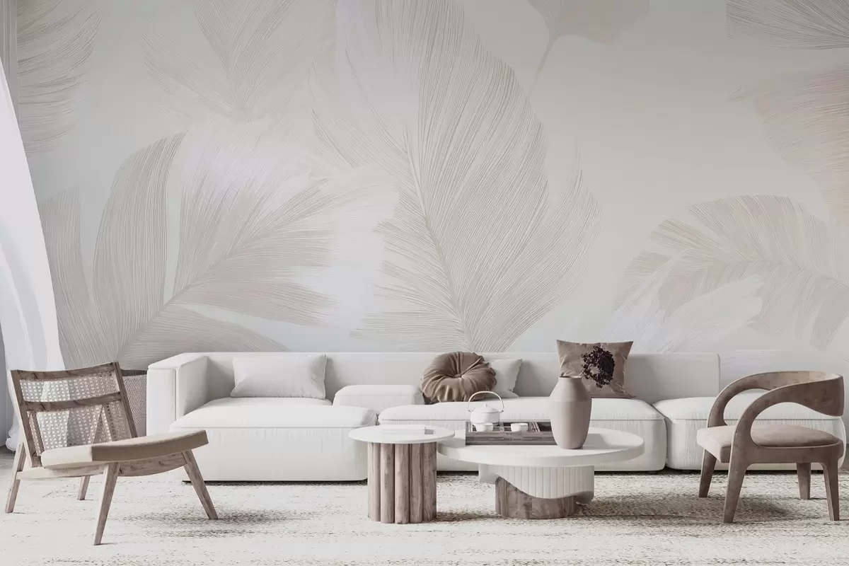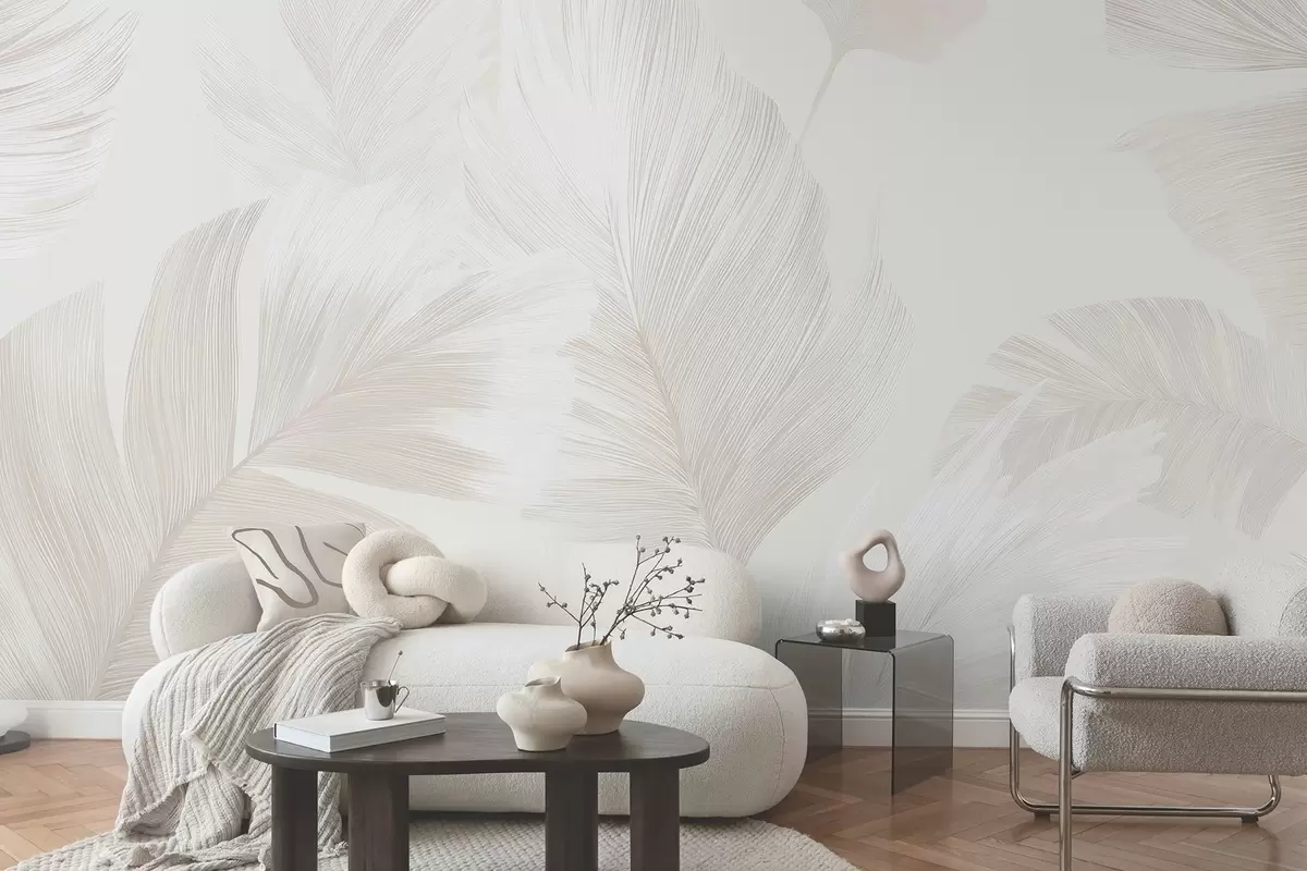 Fotomurales Suaves plumas de color marfil en tonos beige lechoso. Nr. w09563