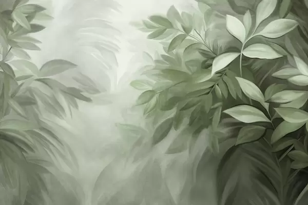 Fotomurales Hojas marrones y beige con un follaje de textura suave y difuminada, en un estilo pictórico con pinceladas visibles. Nr. w09584
