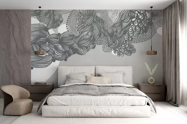 Fotomurales Diseño abstracto con textura sobre fondo gris, con líneas intrincadas y texturas punteadas. Nr. w09621v1