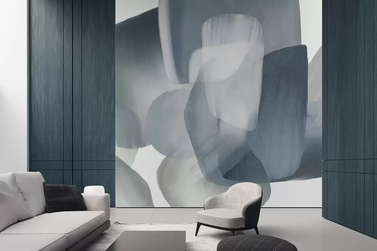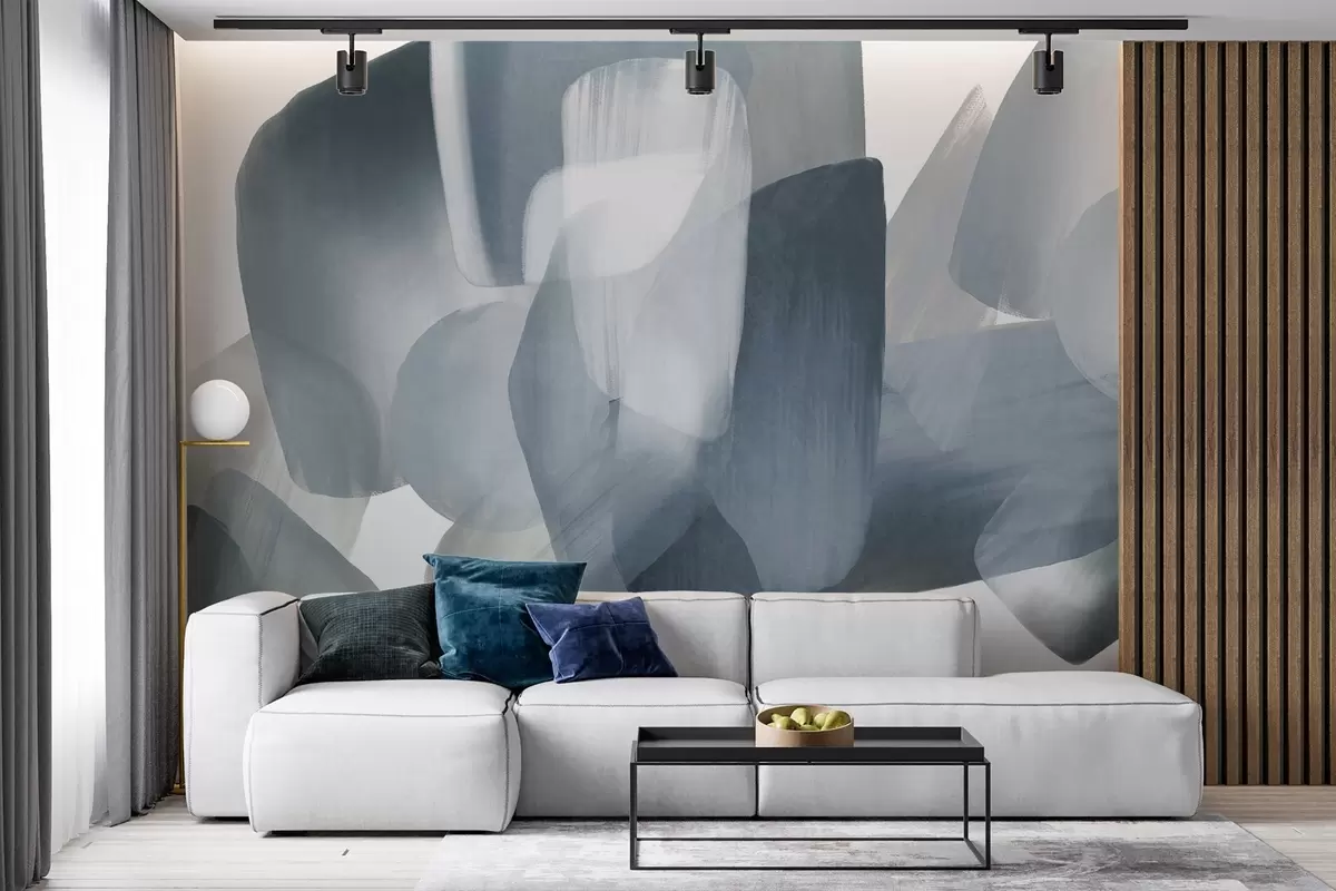 Fotomurales Formas abstractas con textura en colores azul y gris apagados, con bordes suaves y capas superpuestas. Nr. w09642v1