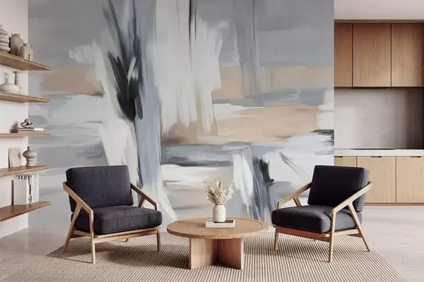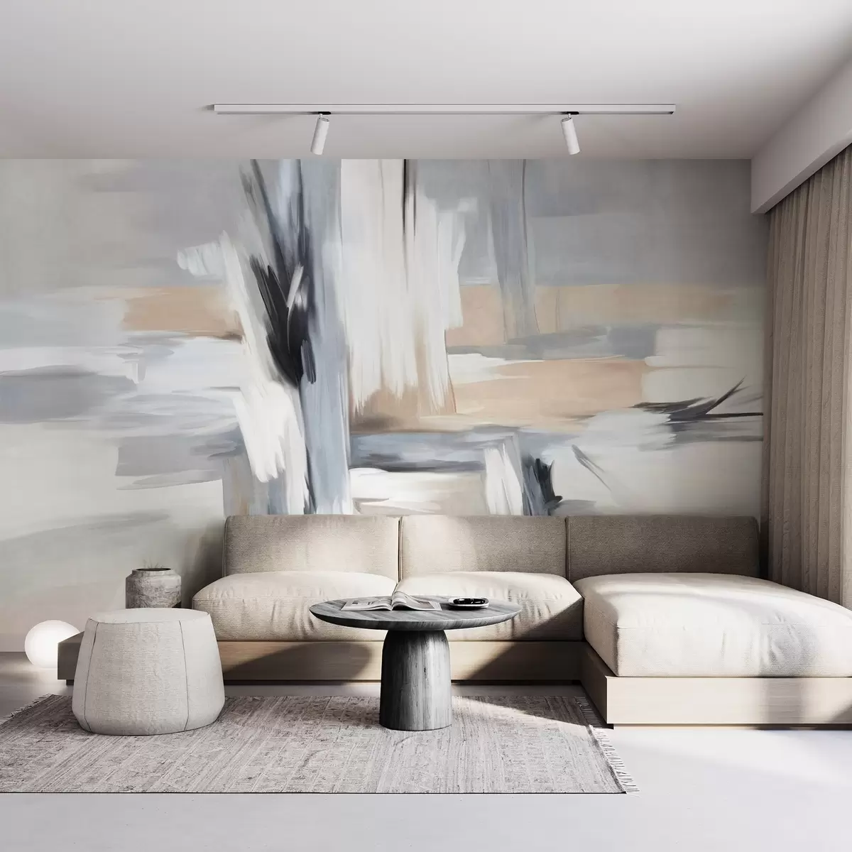 Fotomurales Estilo pictórico abstracto con textura y pinceladas en tonos blancos, grises y beiges. Nr. w09651