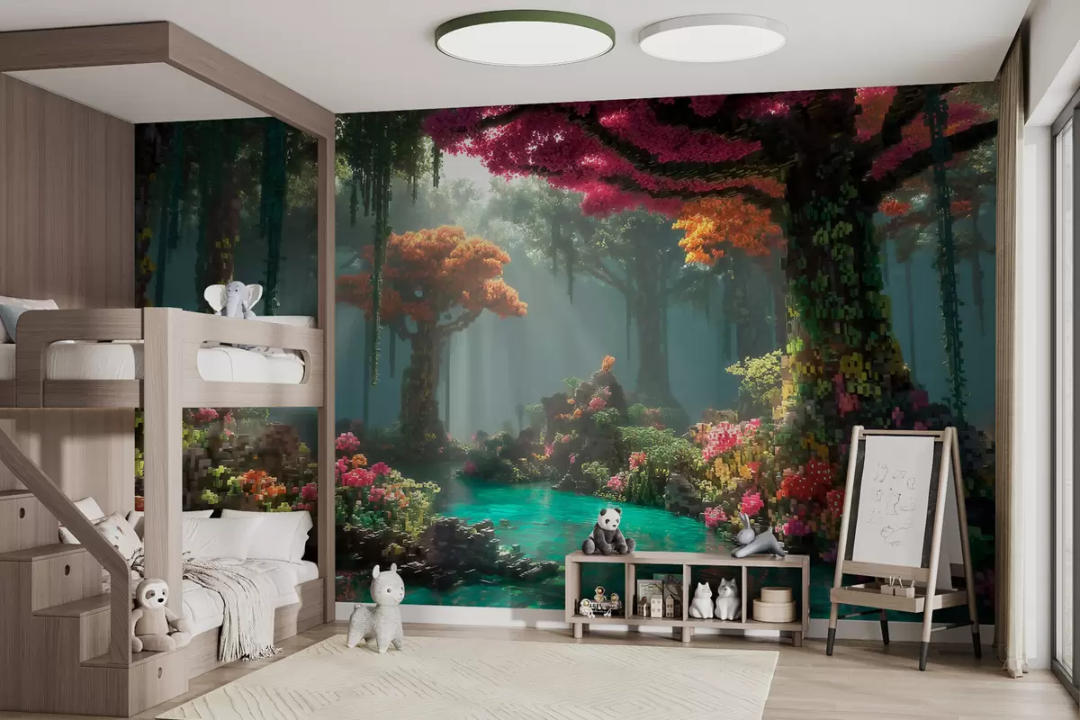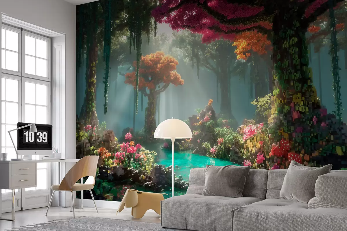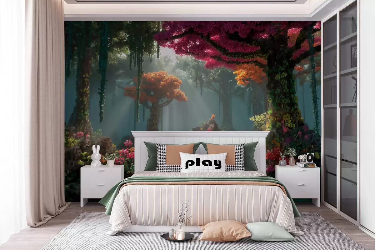 Fotomurales Bosquecillo de un bosque encantado en píxeles inspirado en los videojuegos Nr. w09683