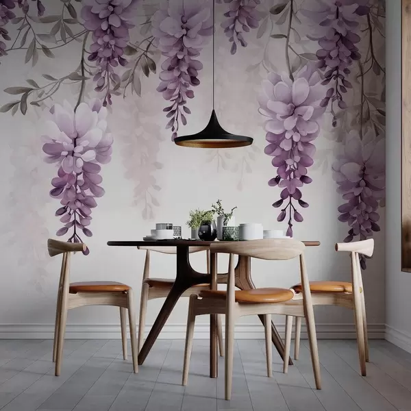 Fotomurales Delicadas ramas grandes de lavanda colgadas en la pared, imitación acuarela. Nr. w09690