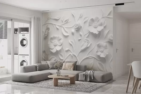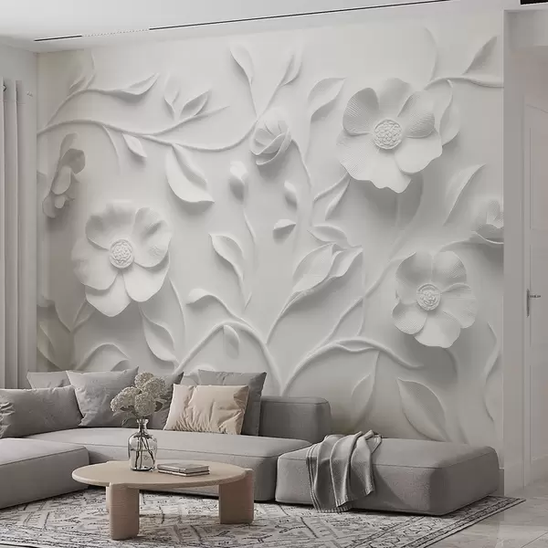 Fotomurales Adorno floral en relieve gris Nr. w09710