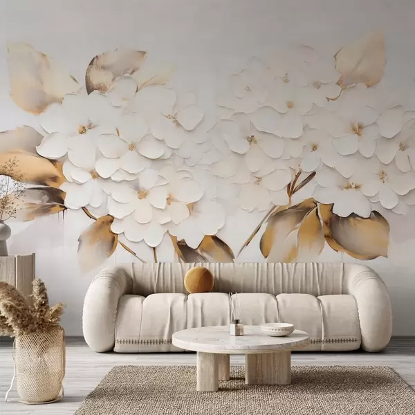 Fotomurales Lujosas hortensias con hojas amarillas Nr. w09711