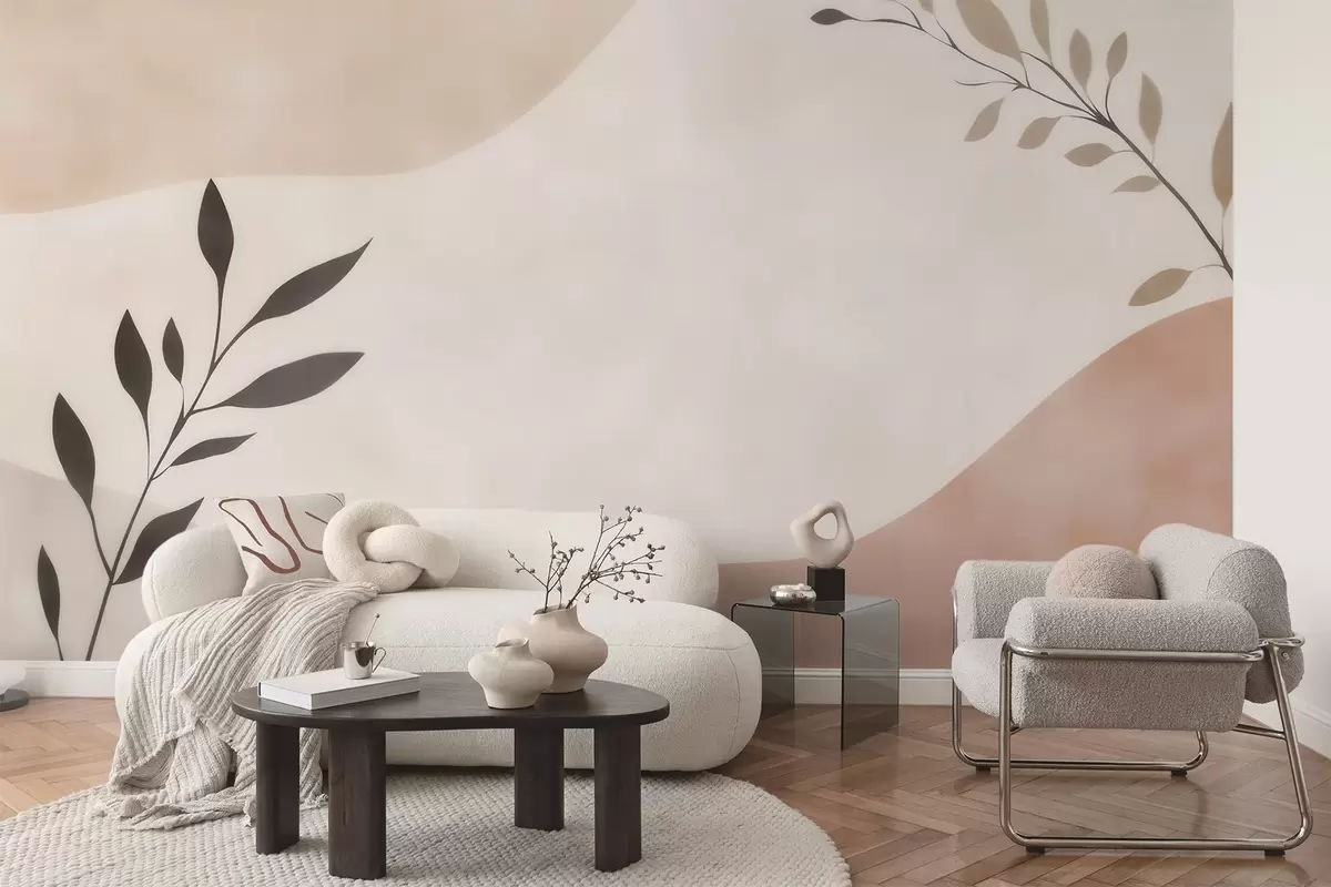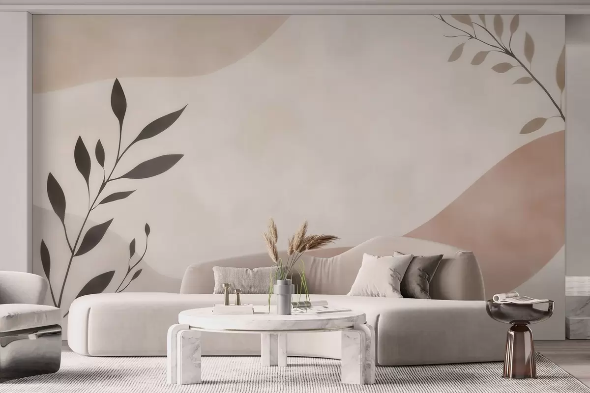 Fotomurales Olas abstractas en tonos beige y melocotón con ramas Nr. w09722