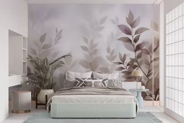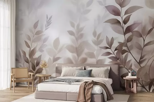 Fotomurales Ramas delicadas con hojas de tonos marrones y beiges apagados, estilo acuarela, arte con textura. Nr. w09750