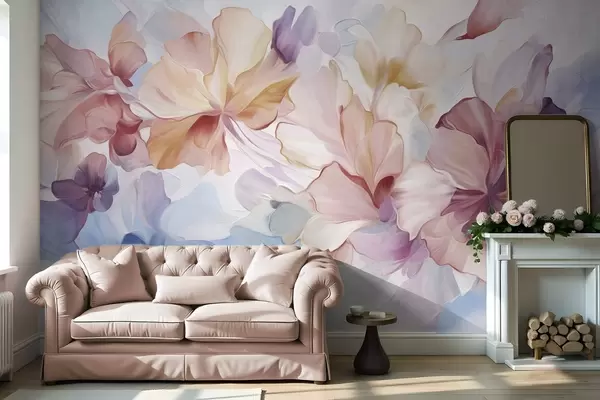 Fotomurales Flores abstractas de fantasía en tonos rosa, melocotón y lavanda, en estilo pictórico y con textura Nr. w09767