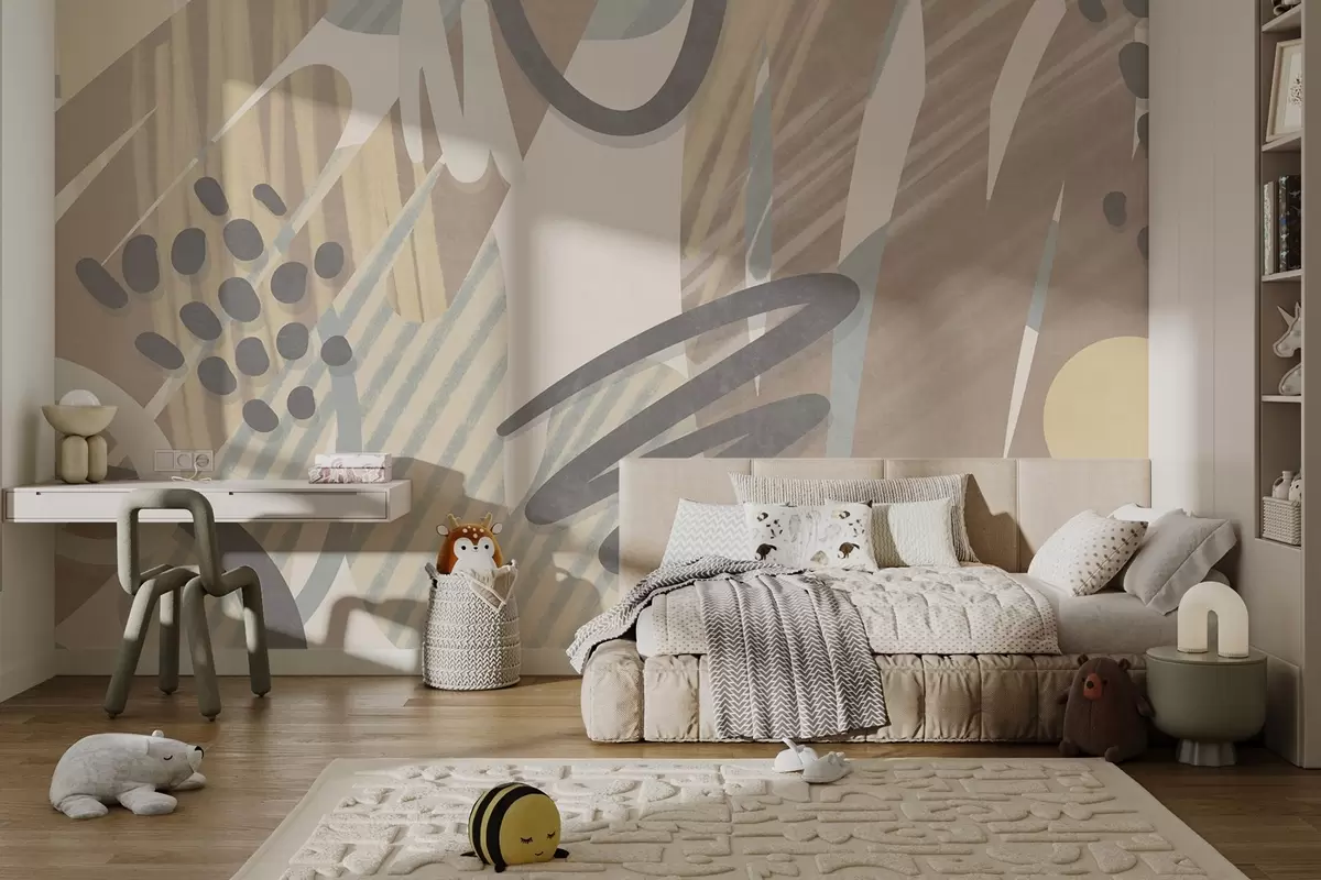 Fotomurales Estampado abstracto con texturas, formas orgánicas, garabatos y puntos en tonos pastel apagados Nr. w09774