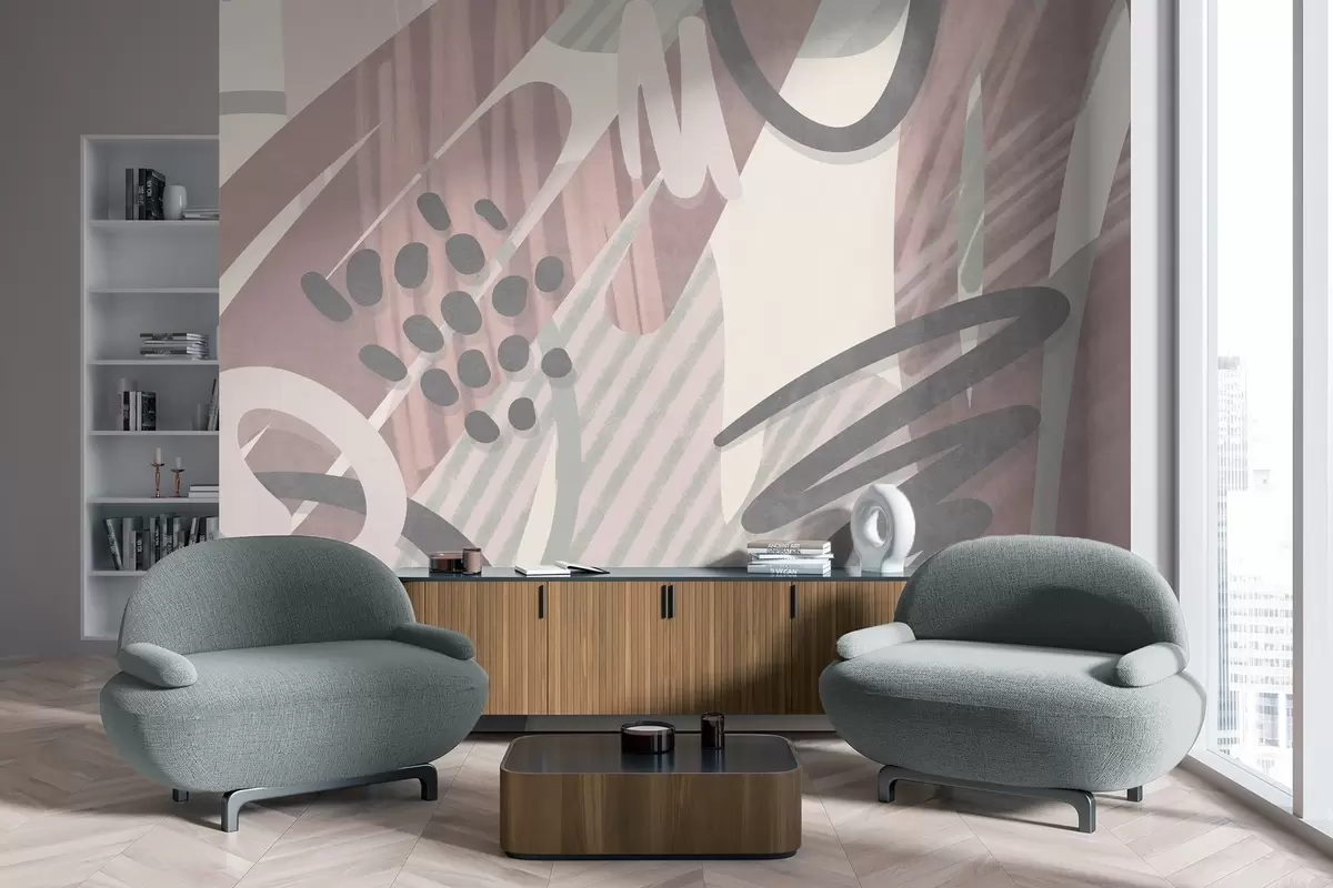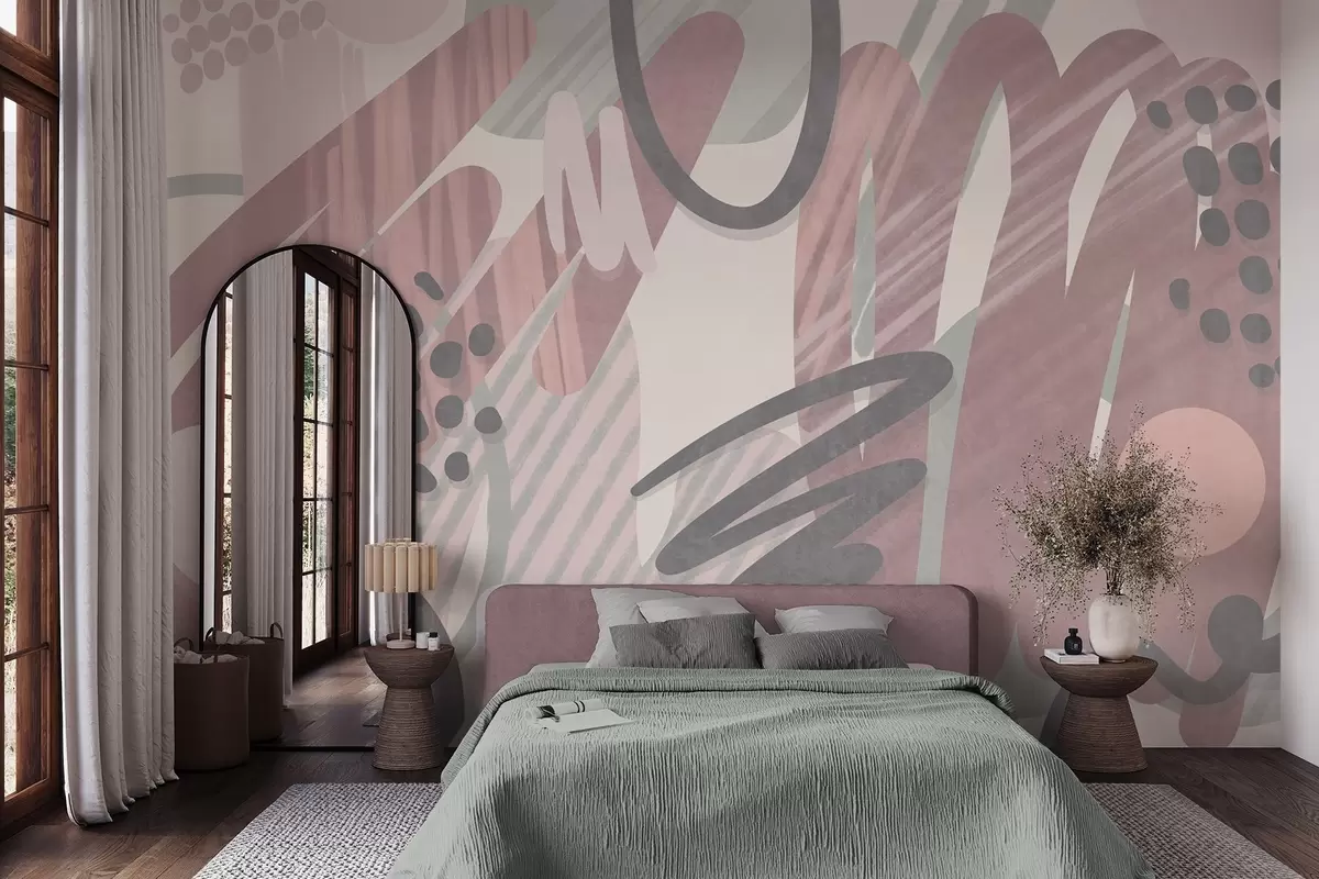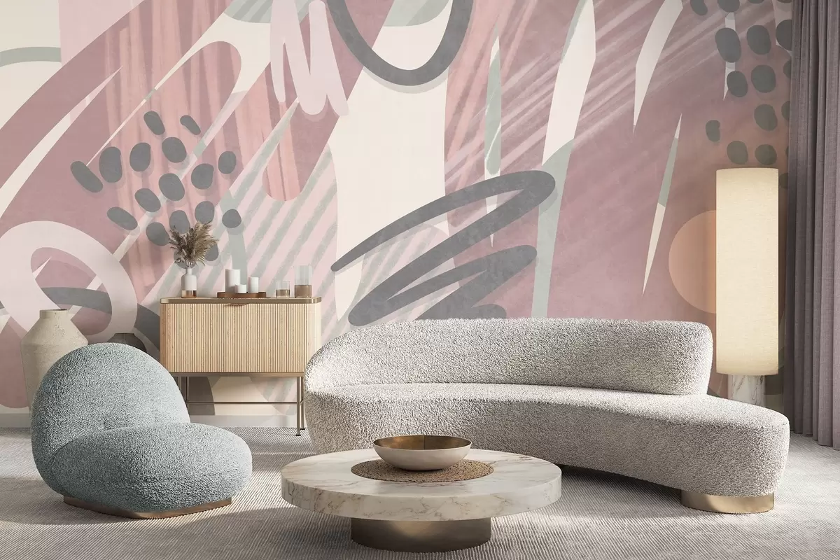 Fotomurales Estampado abstracto con texturas, formas orgánicas, garabatos y puntos en tonos pastel apagados Nr. w09774v1