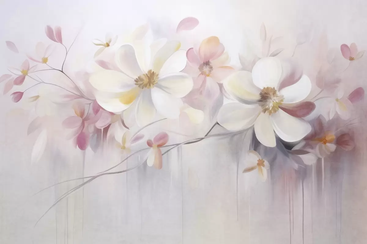 Fotomurales Arte texturizado con flores blancas y rosas de pétalos delicados, fondo abstracto y suave Nr. w09811