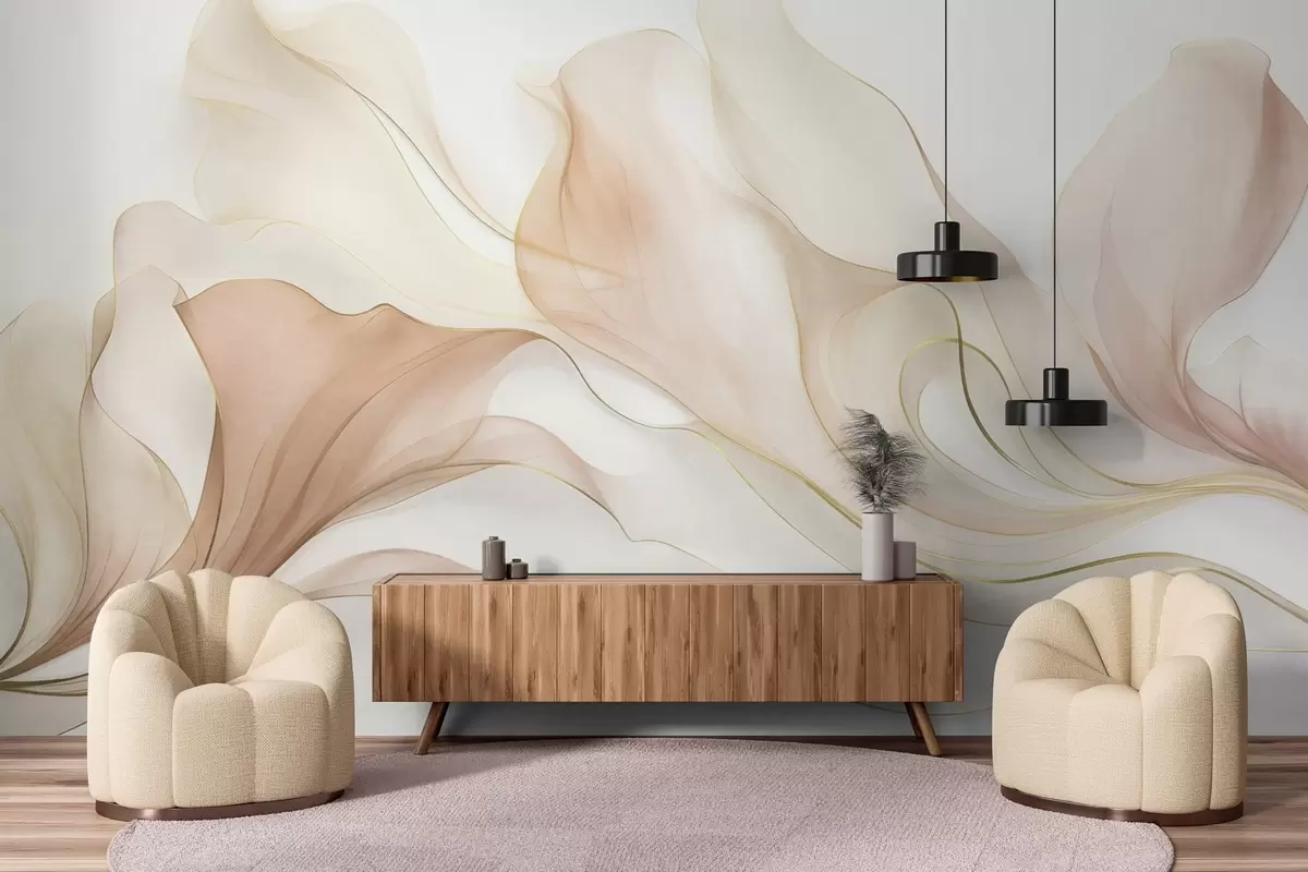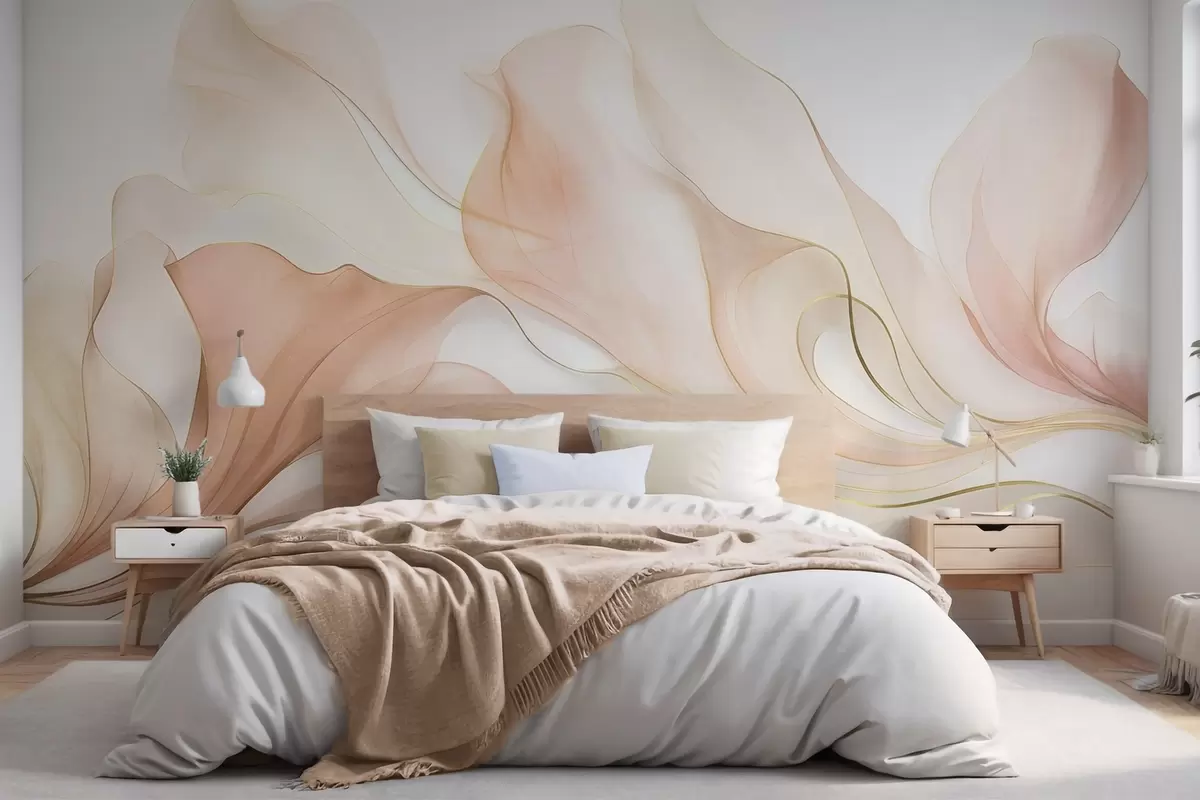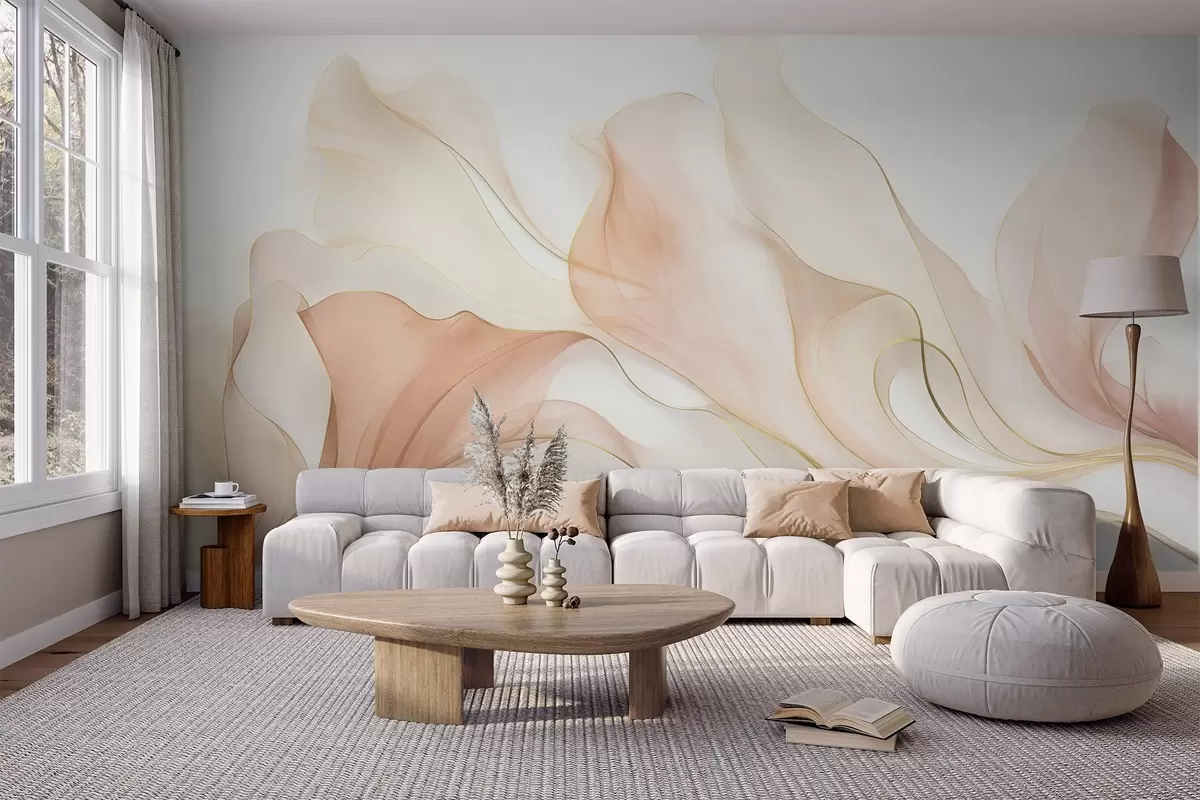 Fotomurales Textura fluida y abstracta en tonos melocotón y crema con líneas delicadas Nr. w09815